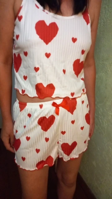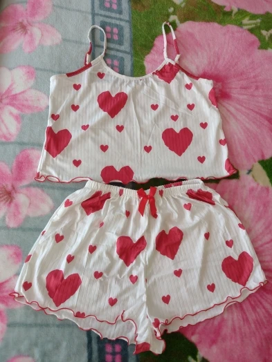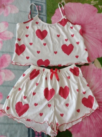 Ensemble de pyjama pour femme à motifs de cœur, conçu pour offrir un confort absolu et un style romantique idéal pour vos soirées détente. Fabriqué dans un tissu doux, respirant et agréable au toucher, ce pyjama allie élégance et bien-être pour des nuits paisibles et des moments cocooning.