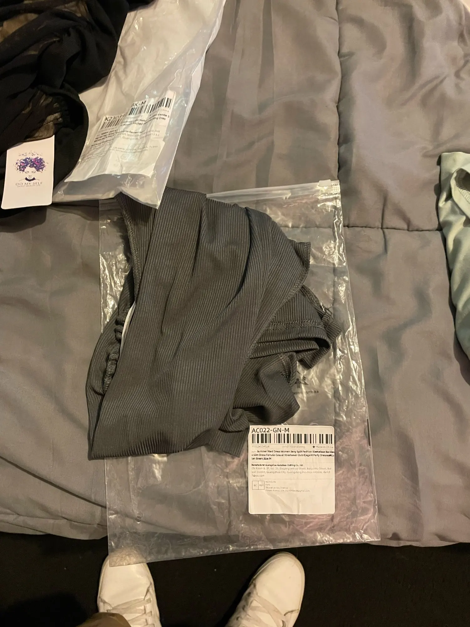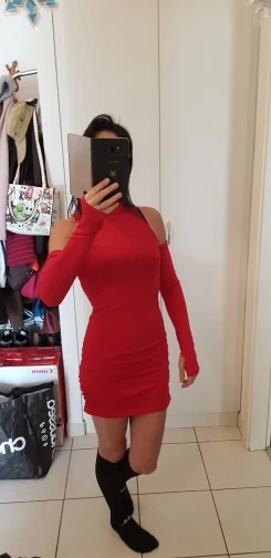 Arrivé en un peu moins de 2 semaines en Bulgarie. J'ai pris une taille L pour que la robe soit un peu plus longue. Pour des mensurations de 80-62-98 cm et une taille de 167 cm, la coupe est impeccable. Au niveau du cou, c'est un peu lâche et il n'y a pas de couture à l'extrémité. Les gants sont grands, ils nécessitent donc une synchronisation, surtout au niveau des poignets. Le cou mesure 30 cm et les poignets 15 cm. À l'arrière, c'est transparent, donc ne comptez pas trop sur l'élasticité. Tissu fin. Même si la taille est grande, la robe taille bien, à part au niveau du col. Donc, si vous préférez une coupe un peu plus longue, prenez une taille au-dessus.